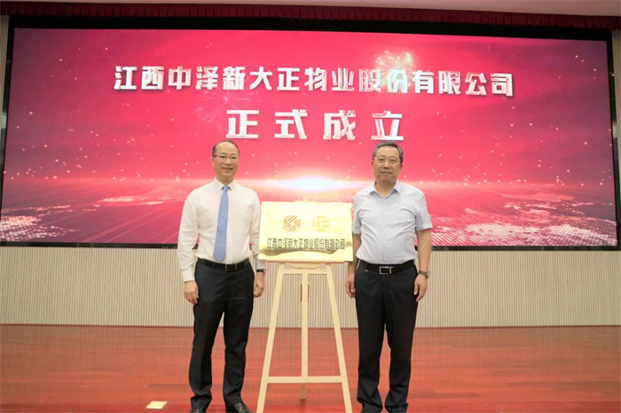 6月30日上午,由江西省鐵路航空投資集團有限公司(以下簡稱“江西鐵航集團”)與新大正物業(yè)集團股份有限公司(以下簡稱“新大正物業(yè)集團”)合資成立的江西中澤新大正物業(yè)股份有限公司(以下簡稱“中澤新大正”)于南昌正式揭牌。江西鐵航集團黨委副書記、副董事長、總經(jīng)理鄒洪,黨委委員、董事、副總經(jīng)理熊國全,新大正物業(yè)集團總裁劉文波、副總裁陳傳宇及雙方公司領(lǐng)導(dǎo)共同出席本次揭牌儀式。會議由熊國全副總經(jīng)理主持。