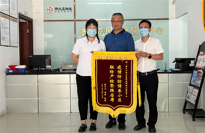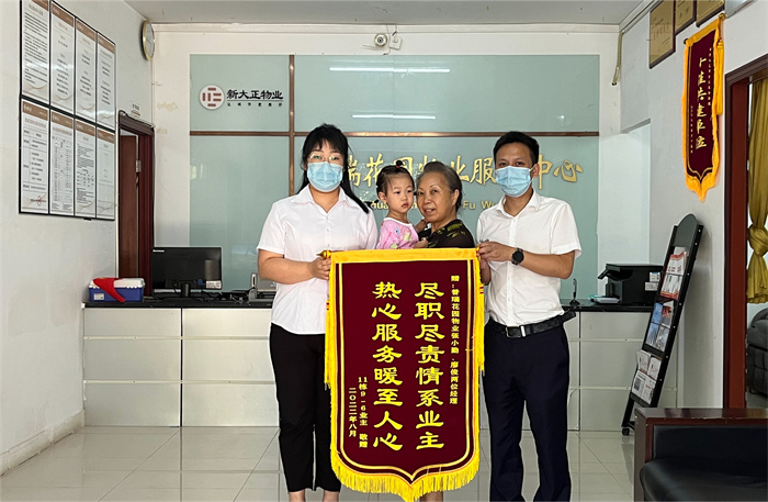 小區(qū)業(yè)主為新大正工作人員贈(zèng)送錦旗