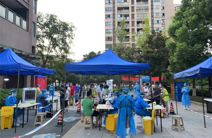 2022年8月8日15:00,重慶市第五人民醫(yī)院進(jìn)場(chǎng)準(zhǔn)備核酸檢測(cè)工作,新大正普瑞花園小區(qū)物業(yè)人員積極動(dòng)員業(yè)主,并協(xié)助醫(yī)院工作人員調(diào)配場(chǎng)地,快速搭建檢測(cè)場(chǎng)地,同時(shí)自動(dòng)承擔(dān)起維持現(xiàn)場(chǎng)秩序、人員引流等工作。在物業(yè)工作人員的協(xié)助下,普瑞花園小區(qū)于17:00正式開(kāi)始對(duì)全體業(yè)主進(jìn)行核酸檢測(cè)工作,共檢測(cè)人員1600余人,未發(fā)現(xiàn)感染病例。
