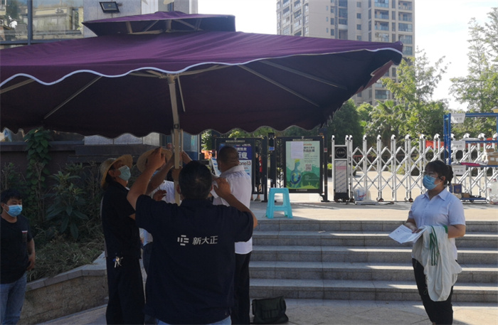 疫情形勢(shì)嚴(yán)峻,防疫工作不容松懈。即使頂著高溫酷暑,新大正物業(yè)工作人員依舊時(shí)刻奮戰(zhàn)在自己的崗位,堅(jiān)守抗疫第一線,全程守護(hù)在業(yè)主身邊。新大正集團(tuán)領(lǐng)導(dǎo)也高度重視此次抗疫工作的相關(guān)情況,積極調(diào)度,為項(xiàng)目服務(wù)團(tuán)隊(duì)緊急配置防疫抗疫資源,全力協(xié)助項(xiàng)目上渡過(guò)難關(guān)。遮陽(yáng)傘、防護(hù)服、口罩、消毒液,集團(tuán)的援助迅速到位。
