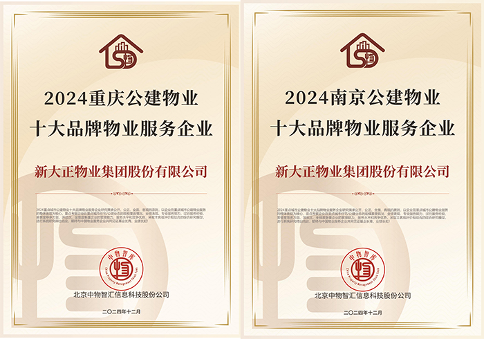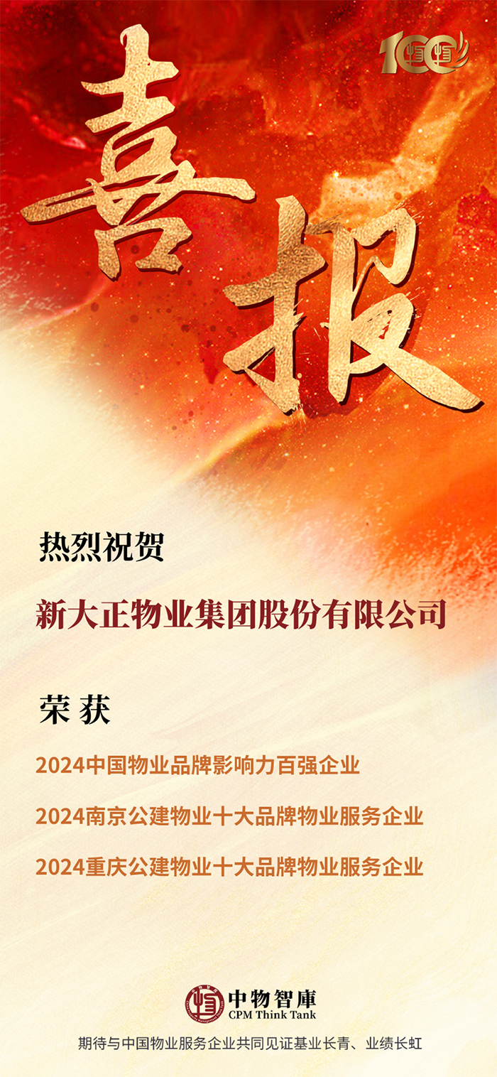 其中,新大正物業(yè)集團(tuán)股份有限公司(以下簡稱新大正)榮獲“2024中國物業(yè)品牌影響力百強(qiáng)企業(yè)”以及“2024南京公建物業(yè)十大品牌物業(yè)服務(wù)企業(yè)”和“2024重慶公建物業(yè)十大品牌物業(yè)服務(wù)企業(yè)”獎項(xiàng)。