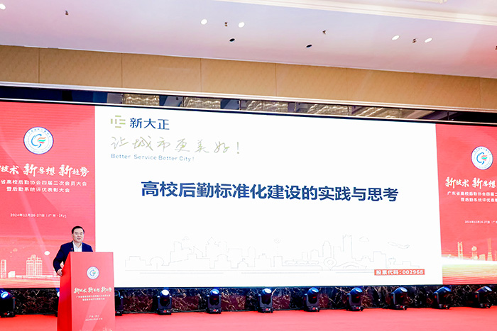 2024年12月26日,廣東省高校后勤協(xié)會(huì)四屆二次會(huì)員大會(huì)在江門(mén)市召開(kāi),來(lái)自全省各高校后勤主管領(lǐng)導(dǎo)、專家和相關(guān)專業(yè)技術(shù)人員300余人齊聚一堂,共同探討高校后勤服務(wù)的高質(zhì)量發(fā)展。新大正集團(tuán)首席運(yùn)營(yíng)官高文田博士受邀出席大會(huì),并做“高校后勤標(biāo)準(zhǔn)化建設(shè)的實(shí)踐與思考”主旨演講。