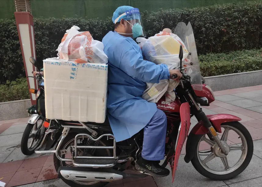 有人和學(xué)校后勤組成“保供輕騎兵”,開起摩托將抗疫和后勤物資運(yùn)送到校園各區(qū)域;